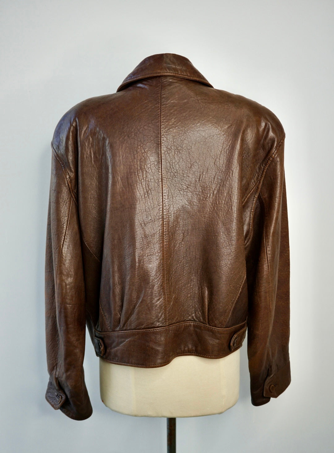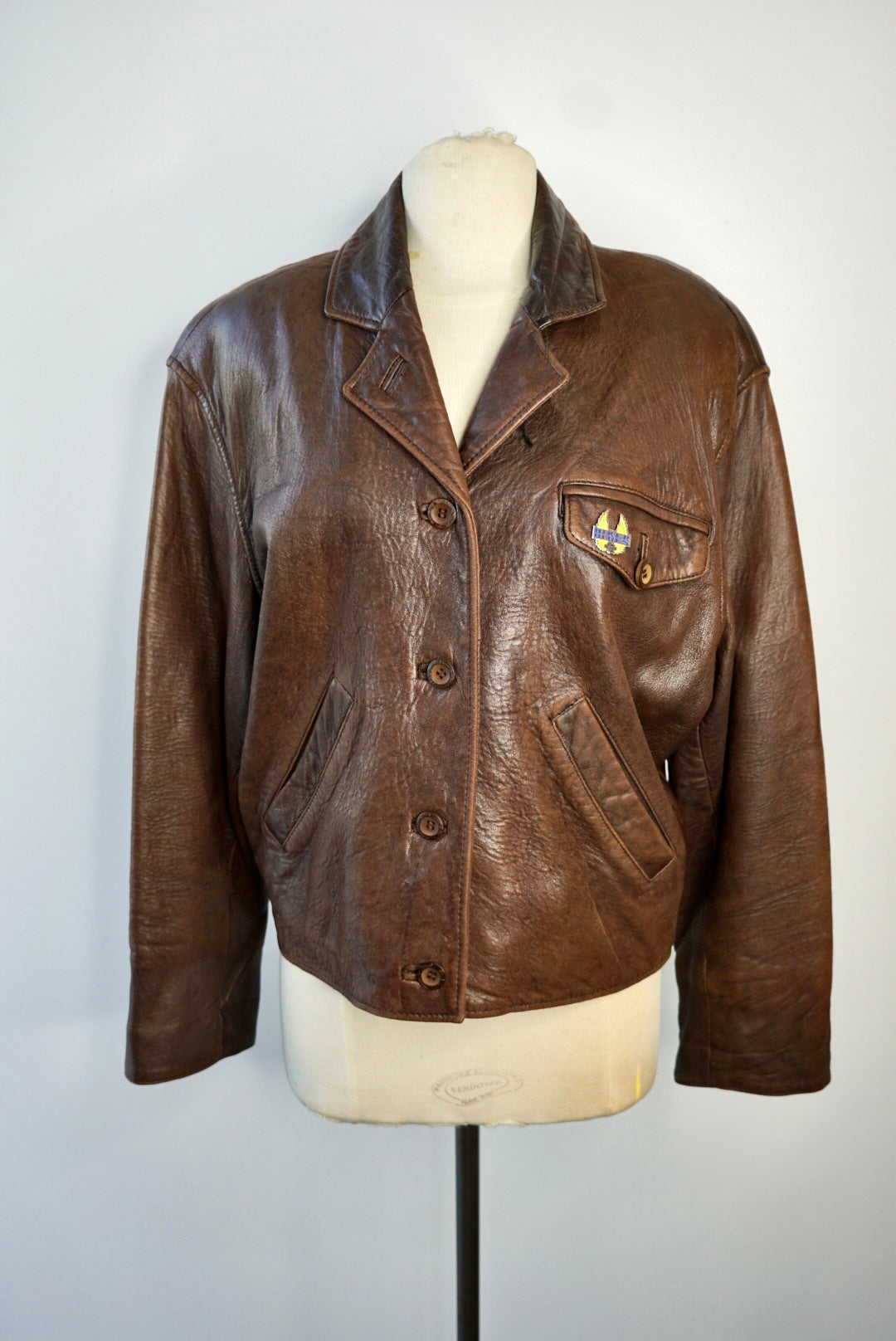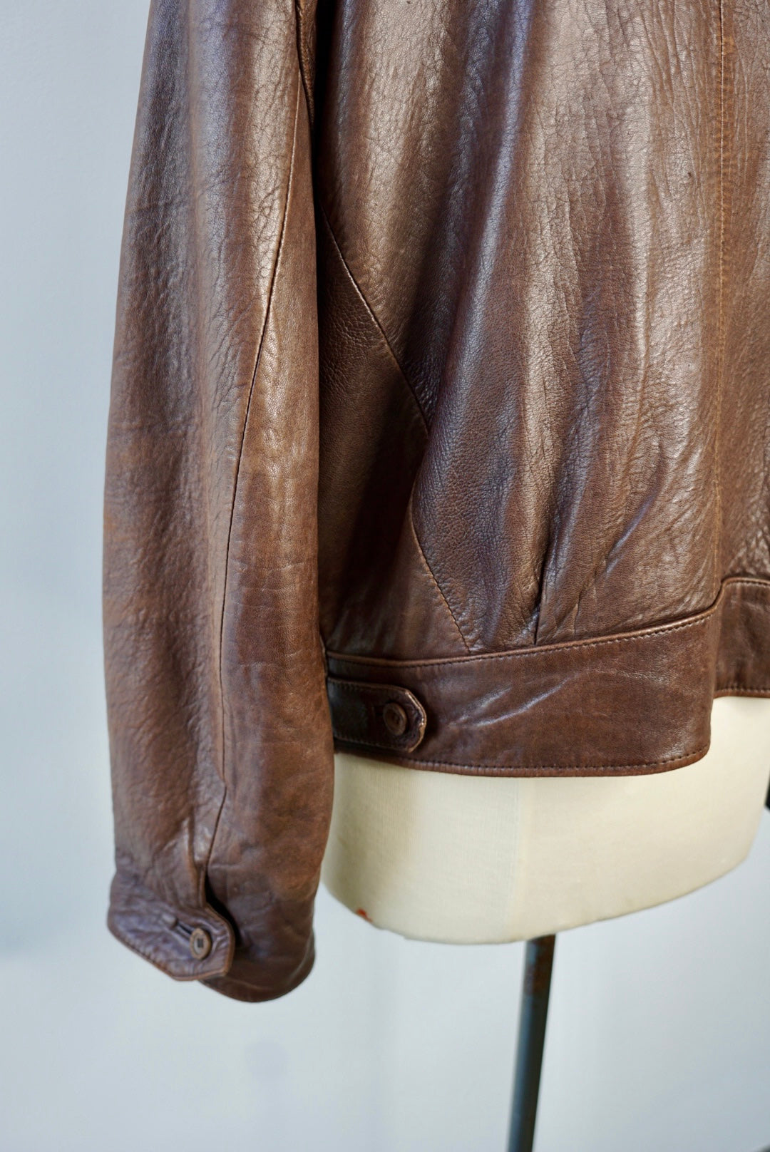 Vintage Ann Taylor (vintage Ann Taylor is the best Ann Taylor) leather jacket. Soft, buttery, worn in leather in a tobacco brown hue. Lapel collar with 1 chest pocket and 2 side pockets. The Biker Blues pin is a bonus gift!